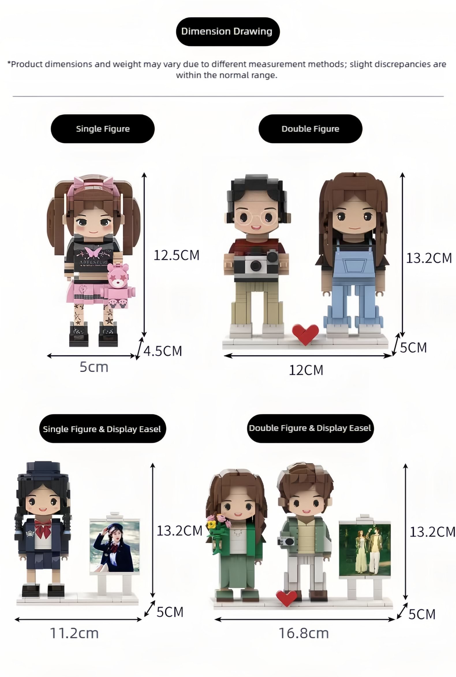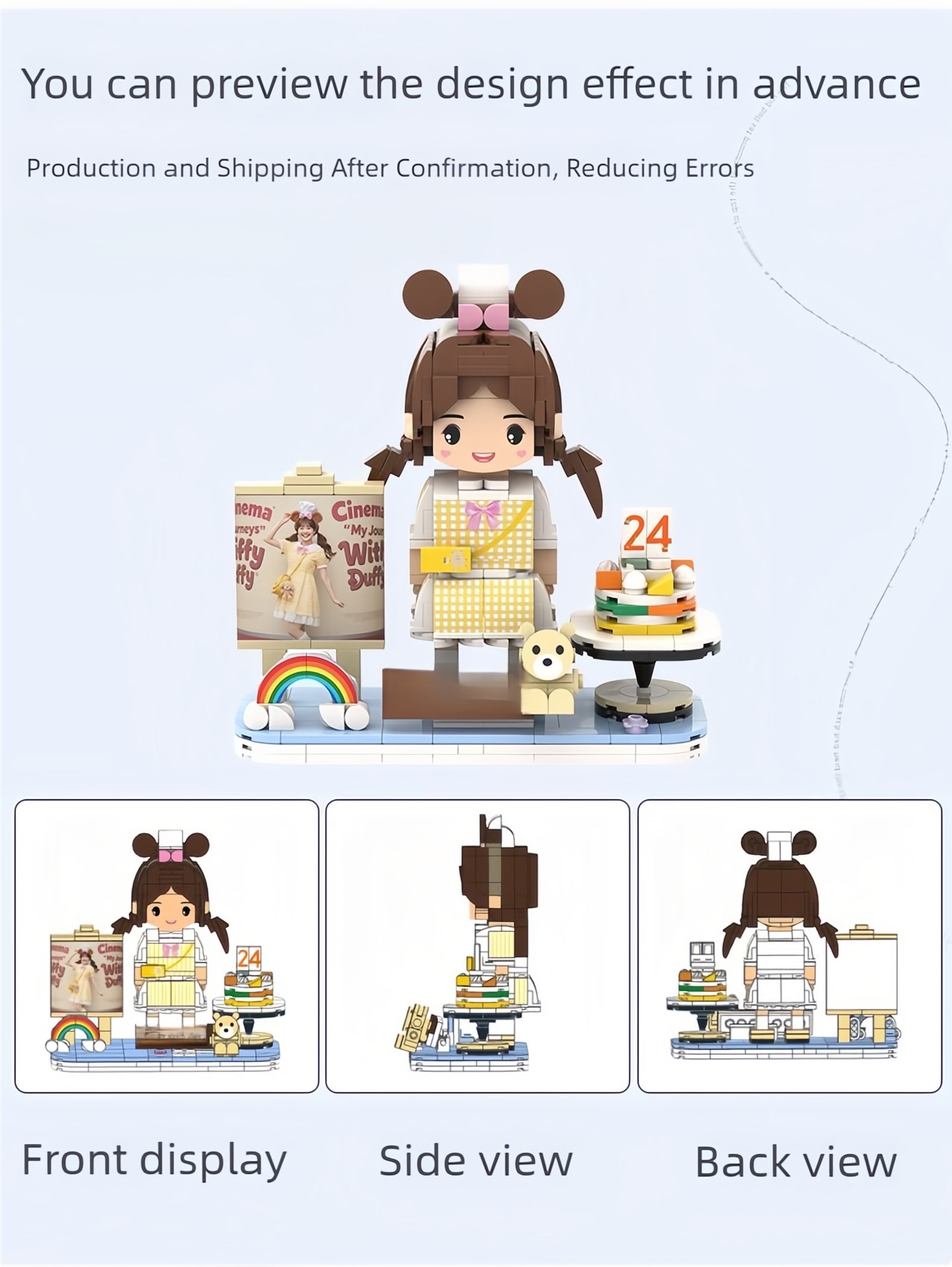 Upload your photo now, and we’ll use pixel art with building blocks to faithfully recreate your essence. This isn’t a cold model—it’s a warm, lifelike 3D replica.